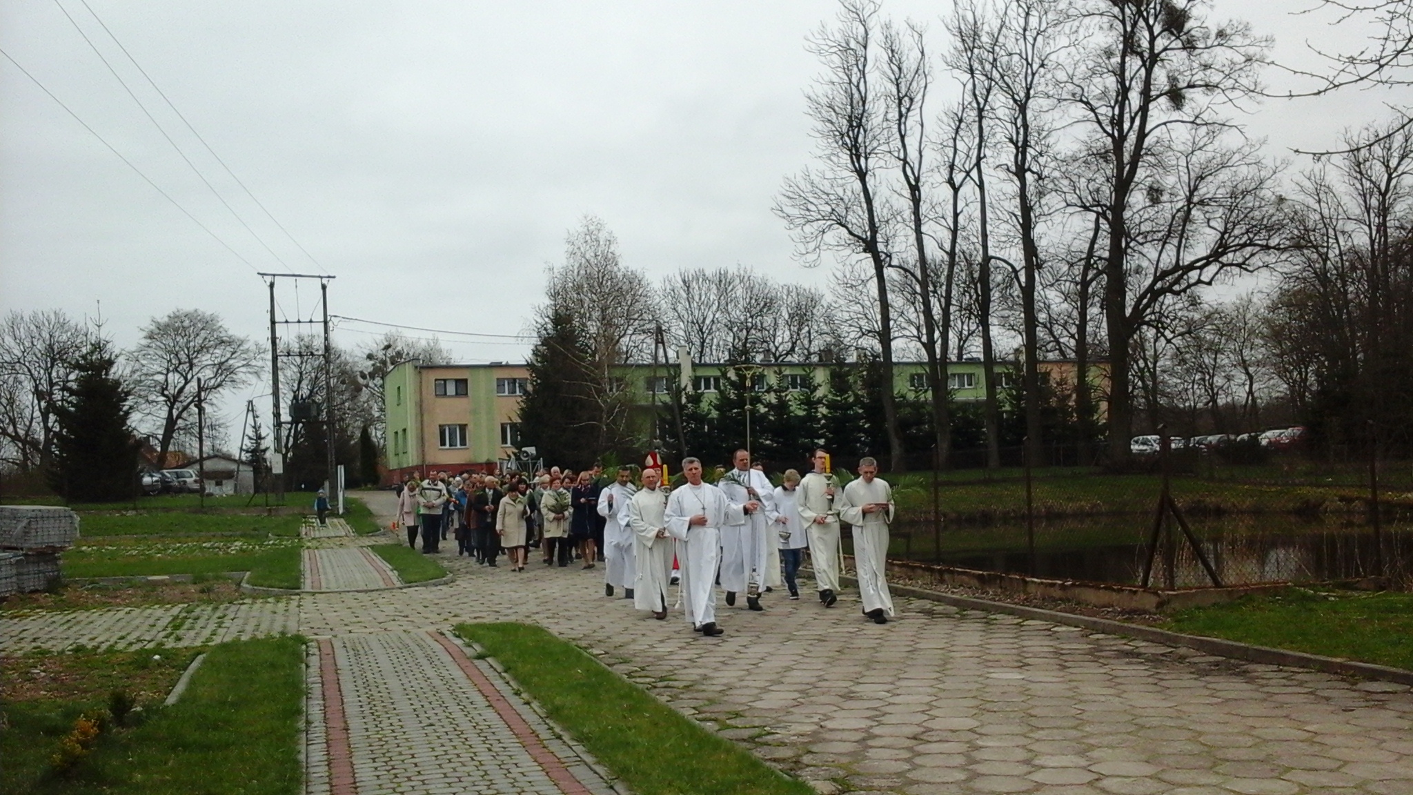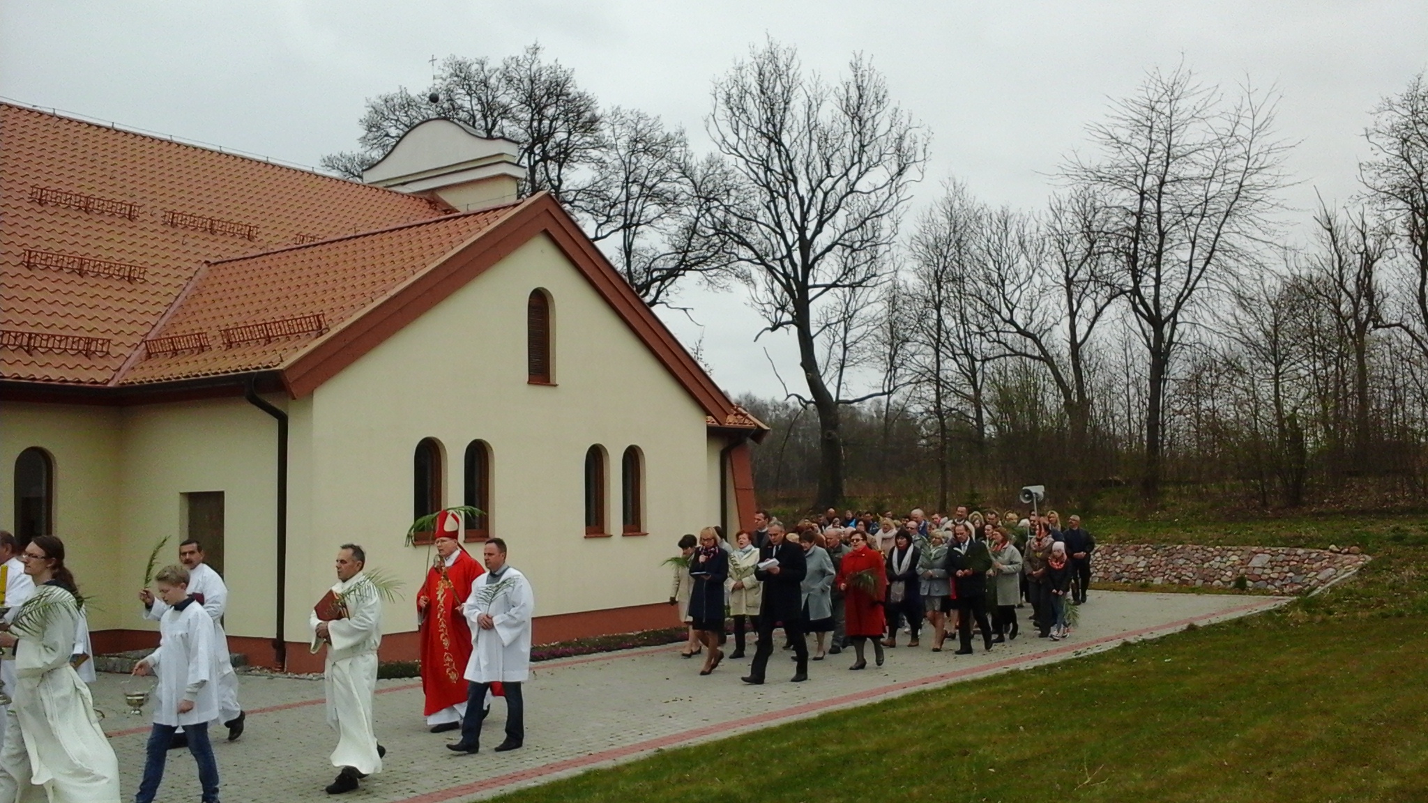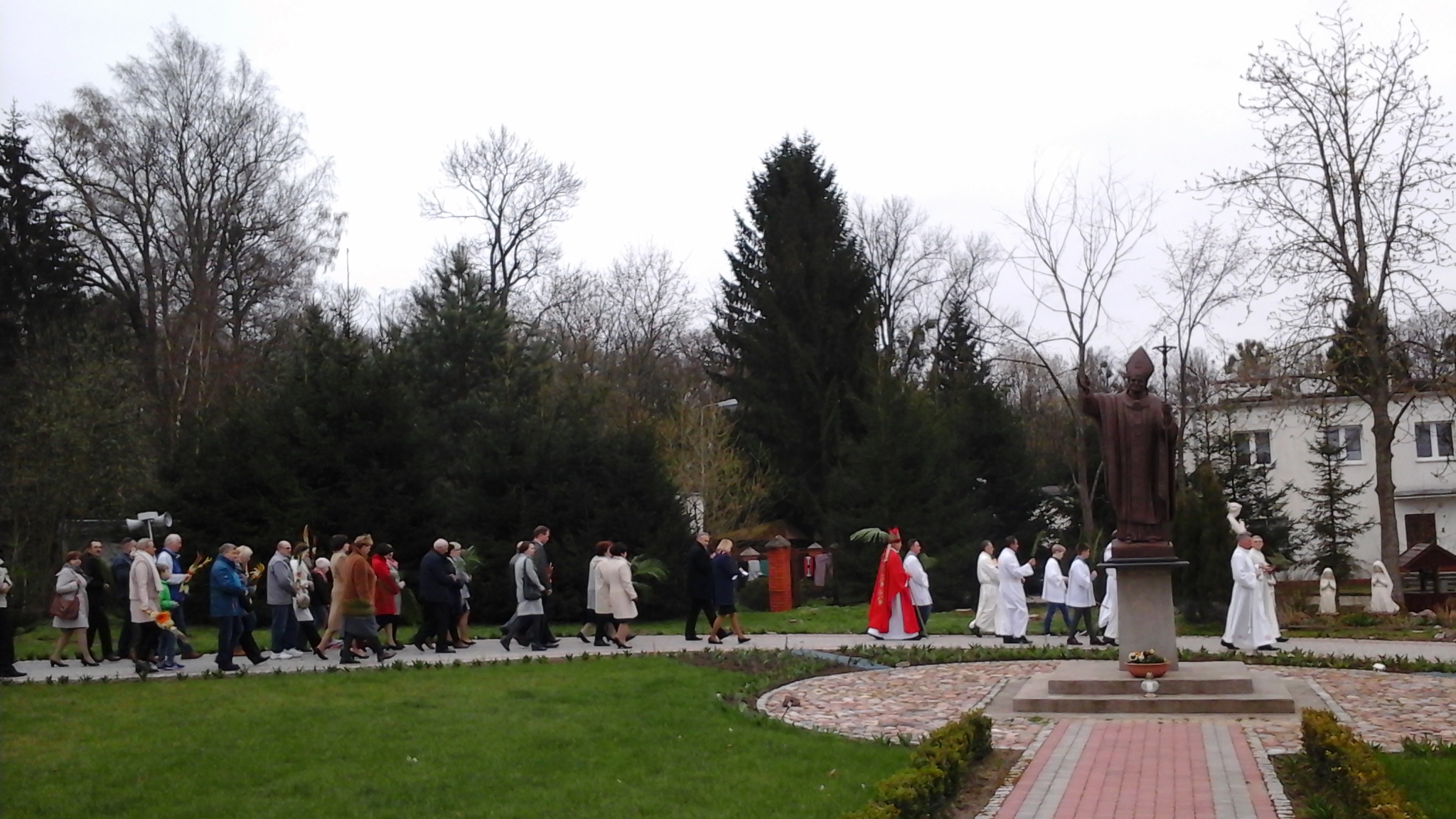 W Sanktuarium Matki Bożej Fatimskiej i św. Jana Pawła II w Stagniewie liturgia Mszy św. rozpoczęła się przy Krzyżu, gdzie nastąpił obrzęd błogosławienia palm, a następnie po odczytaniu Ewangelii, trzymając w ręku ozdobne palmy, śpiewem uwielbiając Chrystusa jako Króla, wszyscy udali się w uroczystej procesji do Kościoła. Mszy św. przewodniczył Ks. Bp. Józef Wysocki.